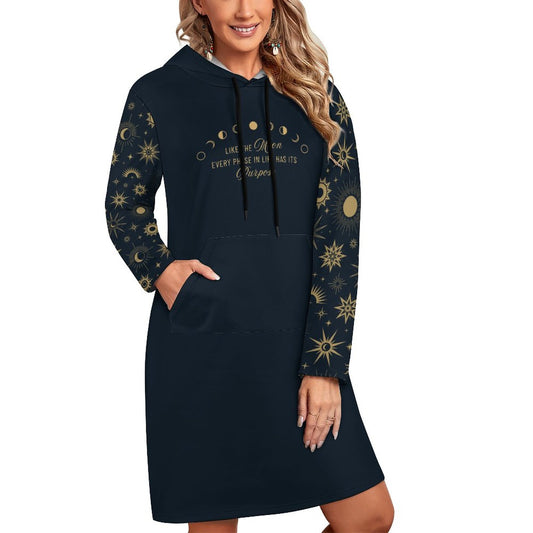 Long Sleeve Hoodie Dress - Phases of the Moon